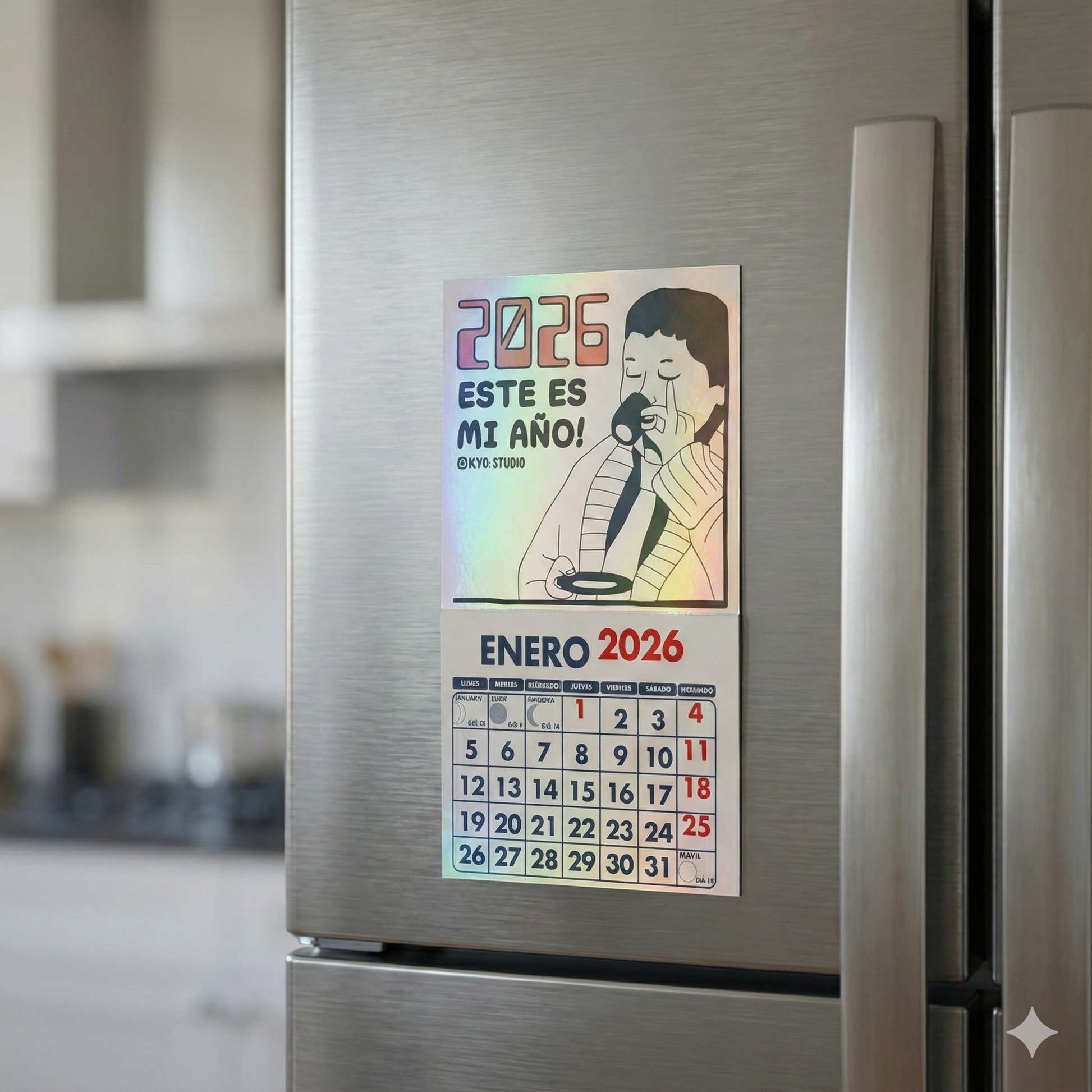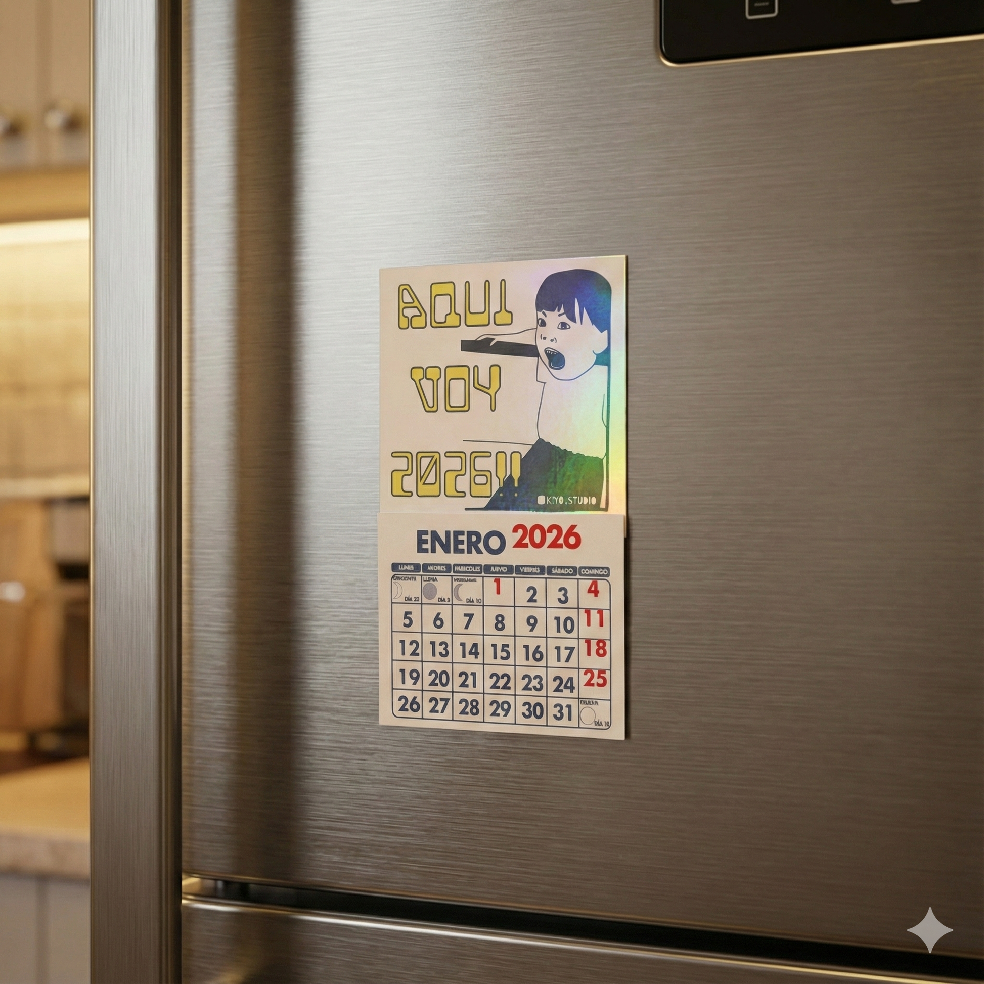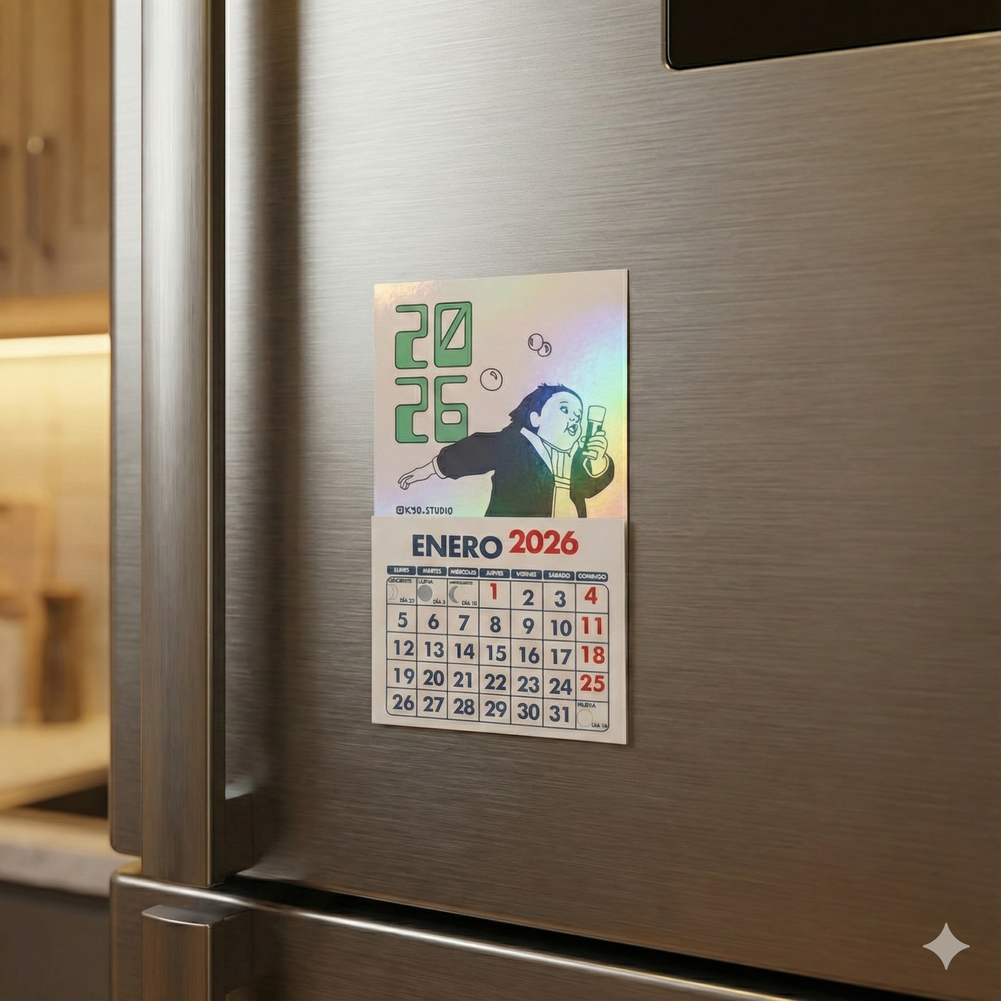 Mini calendarios imantados con ilustraciones de memes para que decores cualquier superficie metálica.