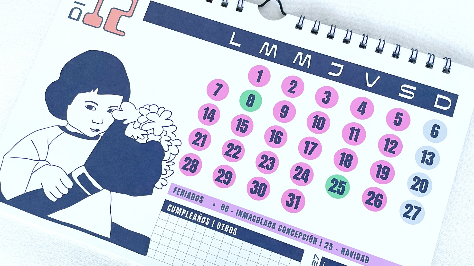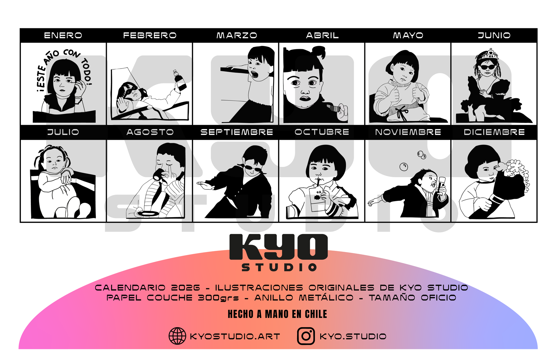 Este calendario ilustrado esta inspirado en meme!. Todos los meses tienen un meme ilustrado en blanco y negro que representa el mood de cada mes. Además se incluyen los feriados nacionales.
